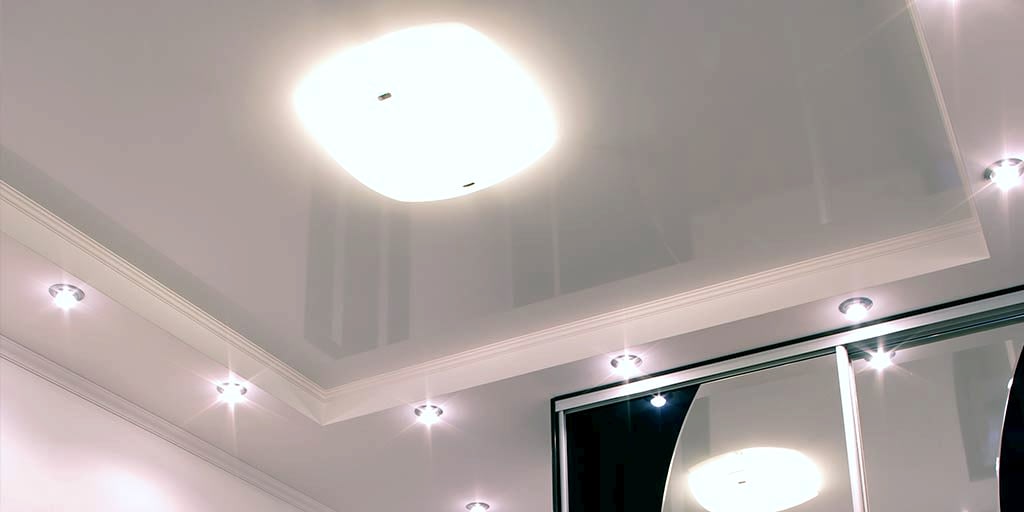 Натяжное полотно в два или несколько Pin Up позволяет организовать эффектное освещение с основной люстрой и дополнительными точечными светильниками.